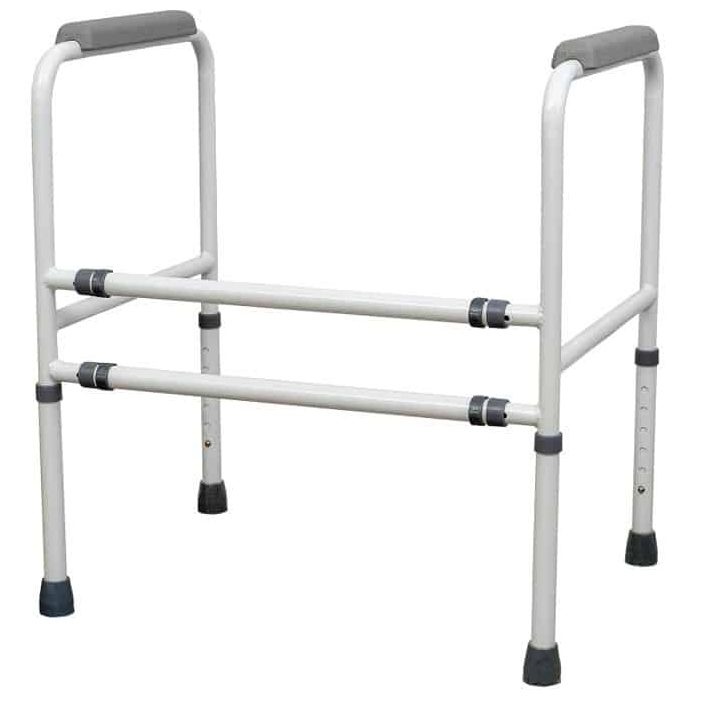 This Toilet Frame is both width and height adjustable, offering maximum flexibility to users. The tubular frame conforms to BS 1224. This Toilet Frame can be extended to suit most needs. The frame is coated with a tough white polymer finish resistant to staining. Moulded support arms wrap around the frame for maximum strength and grip. The toilet frame dismantles easily for easy storage and transportation.