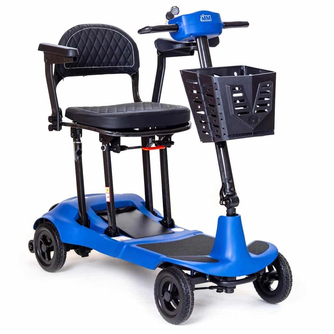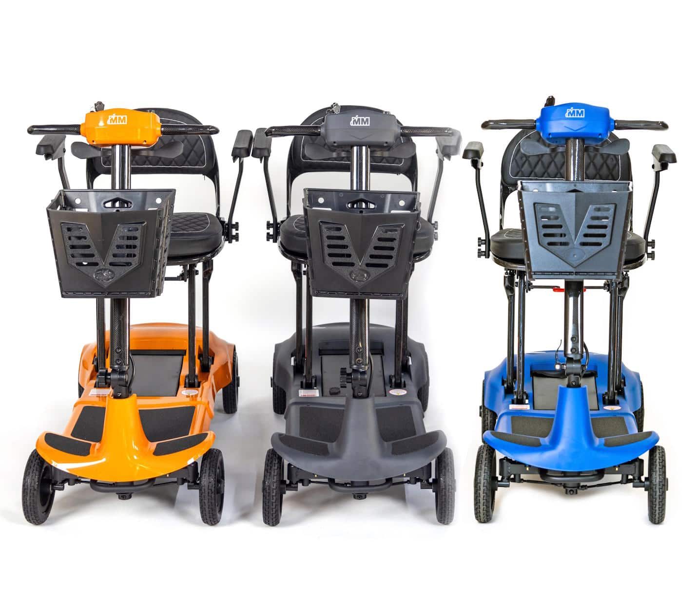 It is available in three colors: Grey, Orange, and Union Jack. It is ideal for those who need a lightweight and portable mobility scooter.