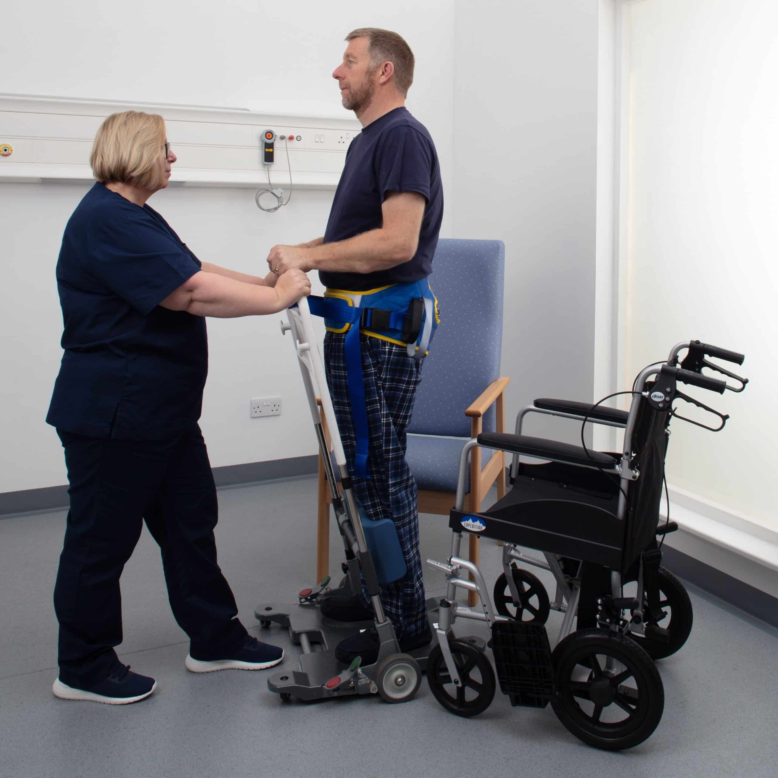The new Motion Transfer Aid is designed to encourage a forward knee movement during raising and lowering of the individual, enabling more body weight through the feet to replicate the closest natural active movement patterns of sitting and standing.
